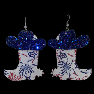 FL Patriotic Fireworks Cowboy Boots and Hat Earrings